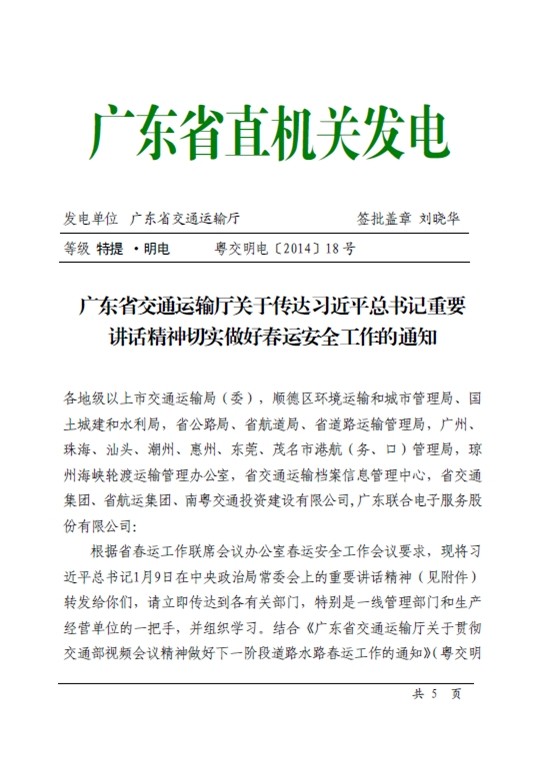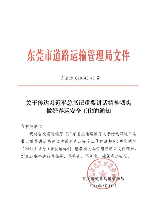 关于传达习近平总书记重要讲话精神切实做好春运安全工作的通知